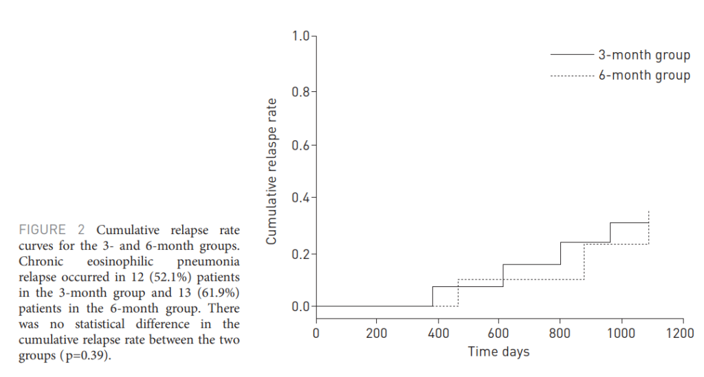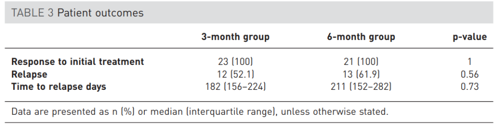 本研究は、3か月 vs 6か月のプレドニゾロン投与期間を前向きに比較した、貴重な無作為化研究です。