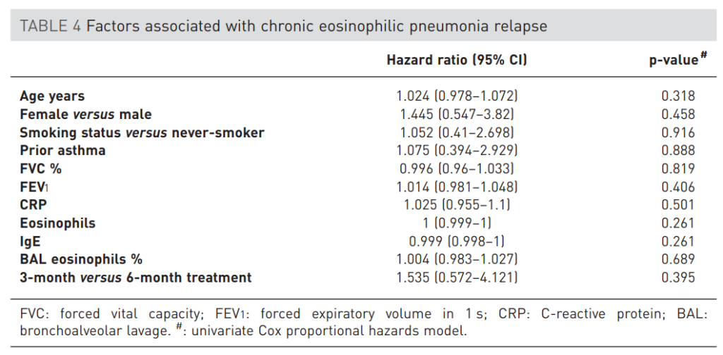Efficacy of short-term prednisolone treatment in patients with chronic eosinophilic pneumonia. Oyama Y, et al. Eur Respir J. 2015.