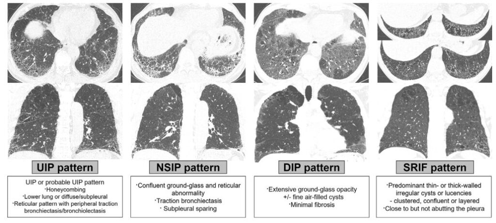 NSIPは病理との一致が相対的に低く、時間経過でUIP様に見えてくるケースもある(NSIP/SRIF/DIPからUIP様へ移行)ので、そもそも分類の難しい可能も考えられますね。