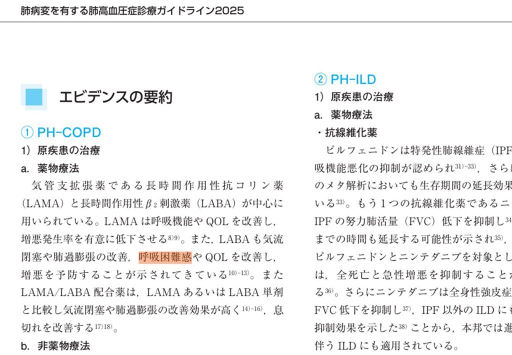 そして重要なのですが、 2025/11/21時点で公開されている呼吸器学会HPや公式ガイドラインの中で「呼吸困難感」が一定程度使用されています(一部抜粋)。