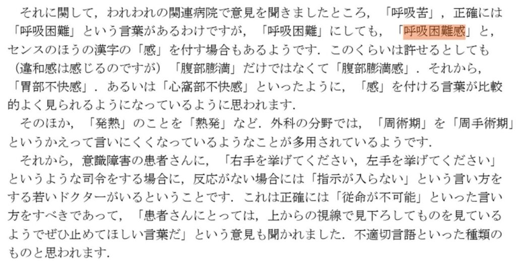 「呼吸困難にはそもそも“感覚”の意味が含まれているので、さらに“感”をつけるのはおかしい」