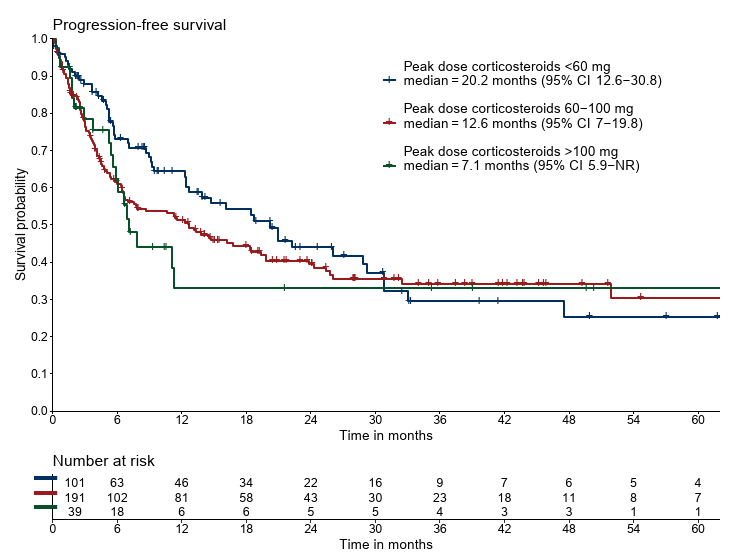 pression, stratified for peak dose of corticosteroids.